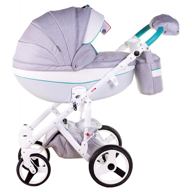 Нижняя часть люльки выполнена из высококачественного пластика, стилизованного под карбоновое покрытие. В остальном, как обычно, большой капюшон пристёгивается к люльке молнией и исключает продувание. Козырёк имеет жёсткую основу. Есть удобная ручка, для переноски детской люльки. Как и у всех топовых моделей детских колясок Adamex капюшон двойной, с москитной сеткой, а значит люлька подойдёт как зимой так и летом. В комплектацию люльки входит москитная сетка. Чехол люльки полотно натянут на каркас люльки, и соответственно обеспечивает отсутствие щелей, и не допускает продувания. Плюс чехол имеет дополнительный отворот, который защищает от ветра и дождя, под ним находится смотровое окошко, и вы всегда сможете наблюдать за своим малышом. В других моделях такой опции не было. Сам капюшон регулируется кнопками. Регулировка подъёма капюшона имеет несколько положений. Это очередное новшество для детской коляски Adamex Monte. Внутренняя обивка выполнена из хлопка легко отстёгивается для стирки. Люлька довольно просторная длинна спального места 76 см. ширина 36см. глубина 20см.Комплектуется артопедичным гиппоалергенным матрасиком. Чехольчик матрасика снимается для стирки.Подголовник люльки имеет плавную регулировку спинки.