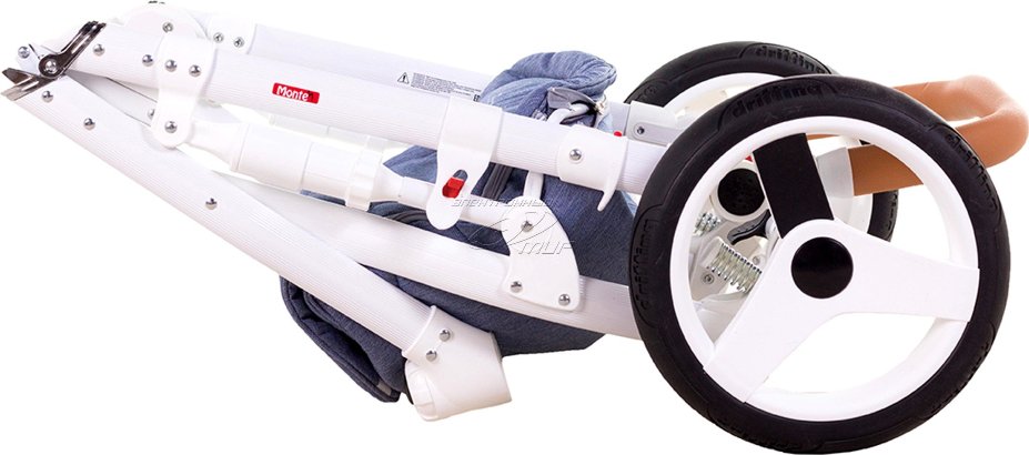Прогулочный блок комплектуется чехлом для ножек, у которого есть дополнительный отворот для защиты от ветра. Рама алюминиевая, ручка обтянута кожей, и регулируется по высоте в удобном для вас положении. Ещё одной новинкой для детской коляски Adamex Monte являются полностью закрытые амортизаторы, со встроенной функцией регулировки жёсткости, благодаря которой, можно легко укачивать малыша, или поднимать перед бордюрами.